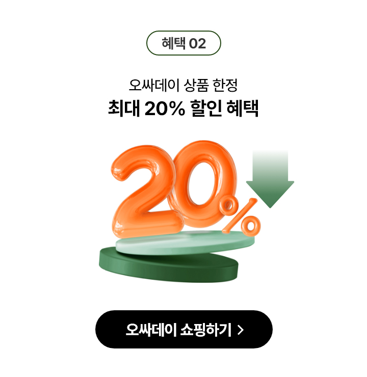 - 1천원 할인 쿠폰은 오싸데이 행사 기간에 한정하여, ID 당 1회 다운로드 및 사용이 가능합니다.